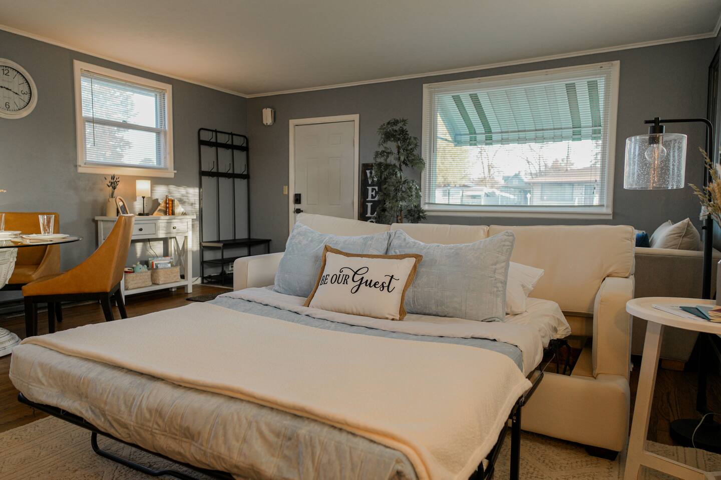 Unwind in this stylish and centrally-located home just 10 minutes from downtown Spokane. Perfect for couples, small families, or business travelers, this modern retreat features two cozy queen beds—one in the main bedroom and another in the comfy pull-out sofa. Whether you’re exploring local restaurants, heading to Riverfront Park, or just relaxing in a peaceful space, you’ll feel right at home here.