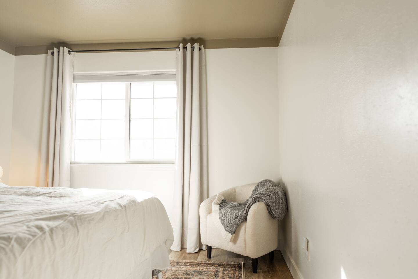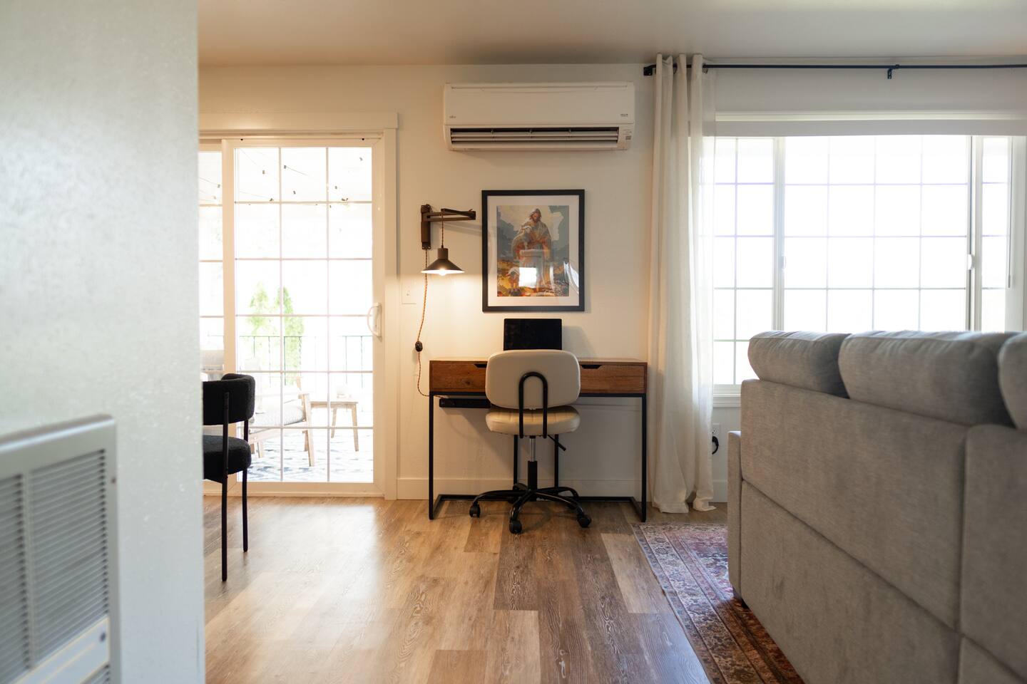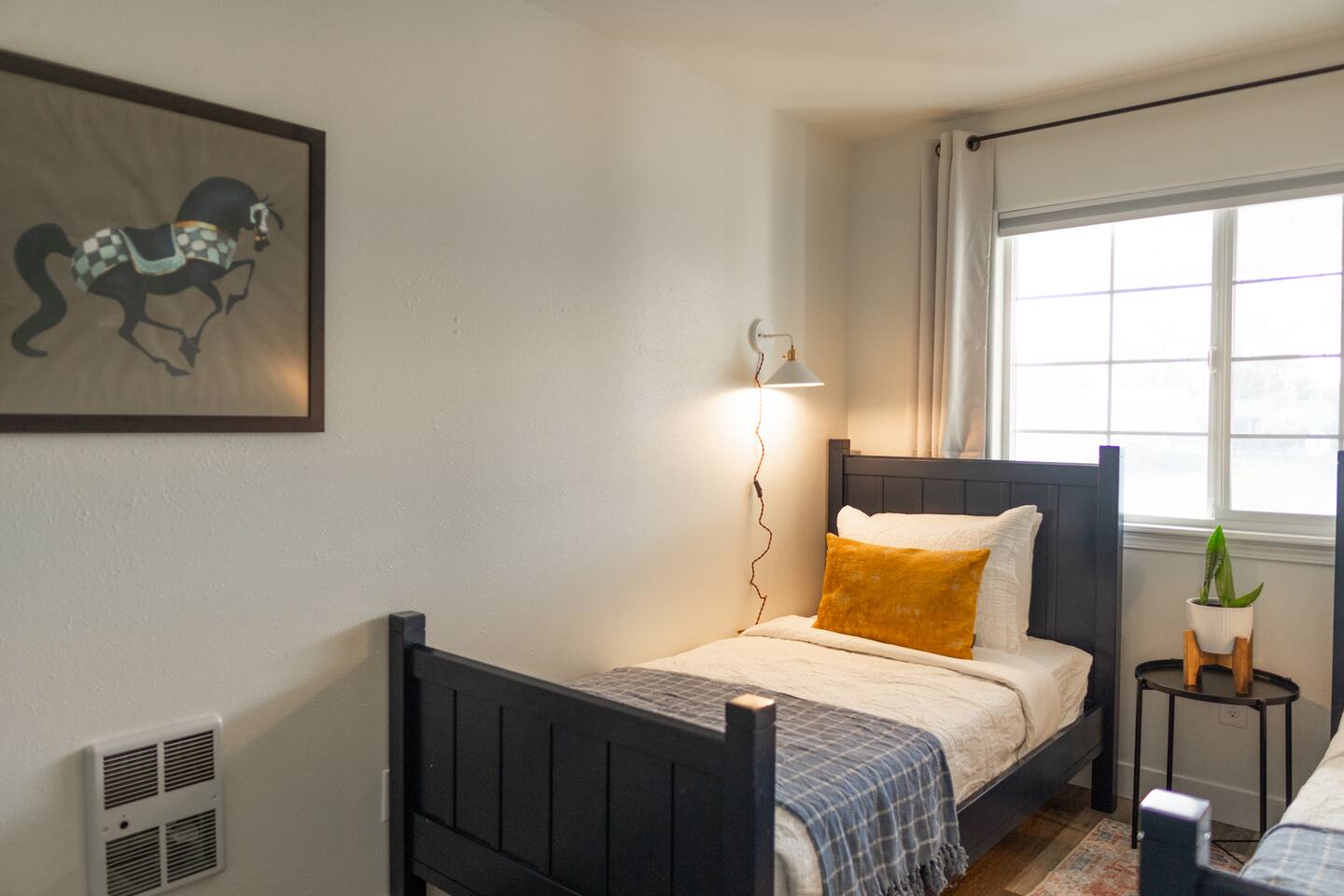 What You’ll Love About the Space: • Relaxed Living Room – Kick back on the comfy sectional, stream your favorite shows on the Smart TV, or catch up on work with reliable high-speed WiFi. • Functional Kitchen – Fully equipped for everything from coffee and toast to full-on home-cooked meals. Includes all the essentials plus a cozy breakfast nook. • Dining & Gathering Space – Share meals or work sessions around the dining table with seating for four. • Two Versatile Bedrooms – One bedroom features a luxurious king-size bed, while the second offers two twin beds that can be combined into a king upon request—perfect for coworkers or families traveling together. • Full Bathroom – Clean, convenient, and stocked with the basics to get you started. • Private Outdoor Space – Sip your morning coffee or unwind in the evening on the private patio—your own little slice of calm. Tucked into a quiet, safe neighborhood with easy access to freeways, restaurants, shops, and parks—this home strikes the perfect balance between accessibility and tranquility.