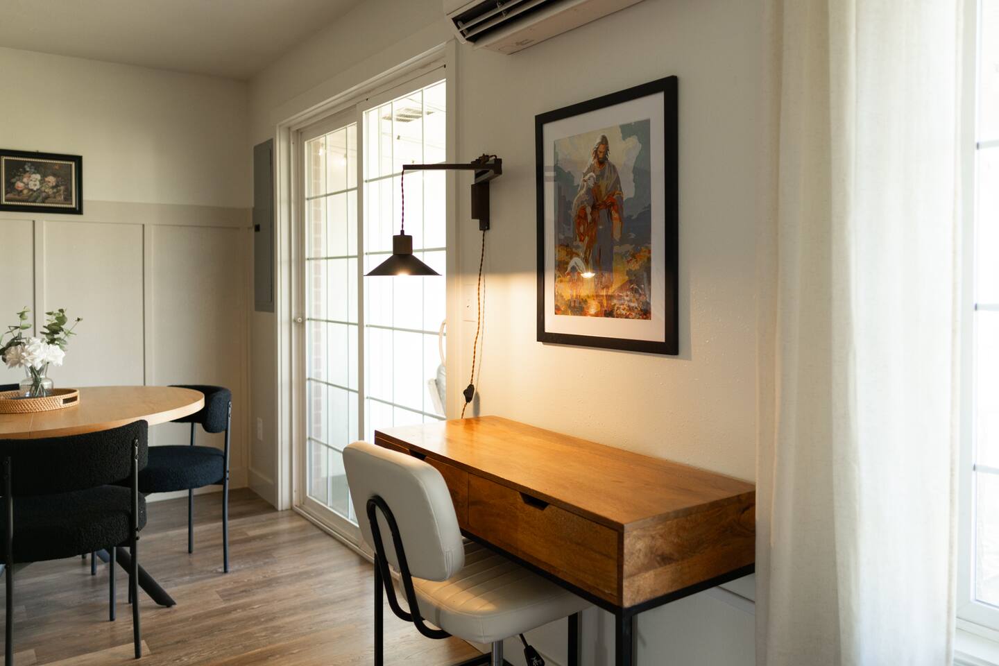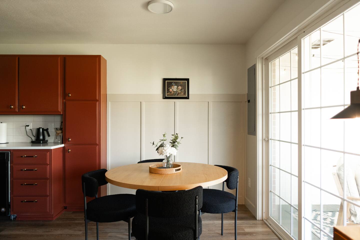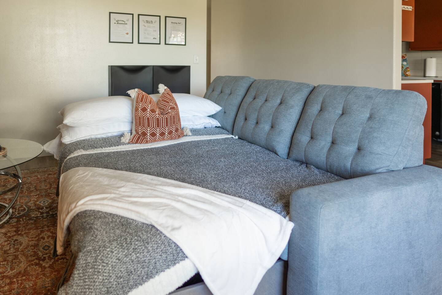 What You’ll Love About the Space: • Relaxed Living Room – Kick back on the comfy sectional, stream your favorite shows on the Smart TV, or catch up on work with reliable high-speed WiFi. • Functional Kitchen – Fully equipped for everything from coffee and toast to full-on home-cooked meals. Includes all the essentials plus a cozy breakfast nook. • Dining & Gathering Space – Share meals or work sessions around the dining table with seating for four. • Two Versatile Bedrooms – One bedroom features a luxurious king-size bed, while the second offers two twin beds that can be combined into a king upon request—perfect for coworkers or families traveling together. • Full Bathroom – Clean, convenient, and stocked with the basics to get you started. • Private Outdoor Space – Sip your morning coffee or unwind in the evening on the private patio—your own little slice of calm. Tucked into a quiet, safe neighborhood with easy access to freeways, restaurants, shops, and parks—this home strikes the perfect balance between accessibility and tranquility.