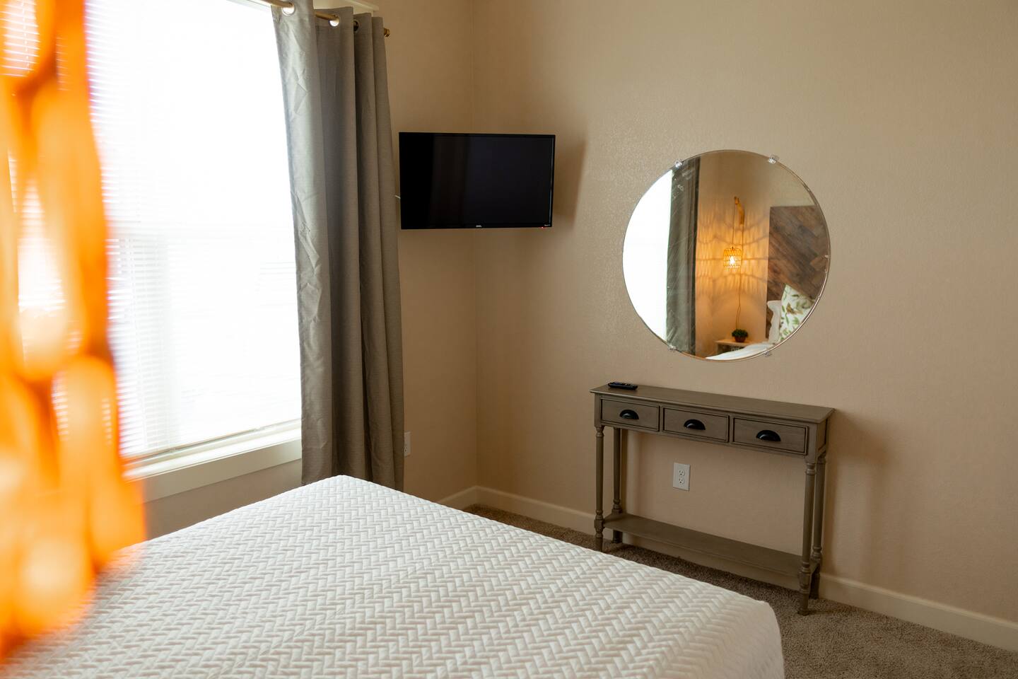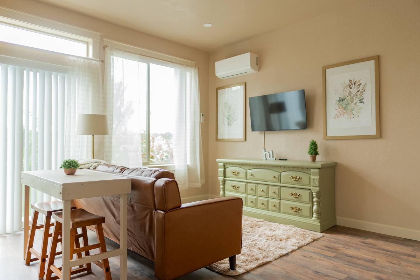 Welcome to your private 1-bedroom guesthouse in the heart of town. This quiet, central stay is ideal for business trips, weekend getaways, or long visits. Inside you’ll find a queen bed, smart TV, fast WiFi, and a fully equipped kitchen for easy meals. The living area is cozy and bright, perfect for relaxing after a day of work or exploring. Enjoy modern furnishings, private entrance, and parking. Close to downtown dining, coffee shops, and local attractions—your peaceful hideaway awaits.