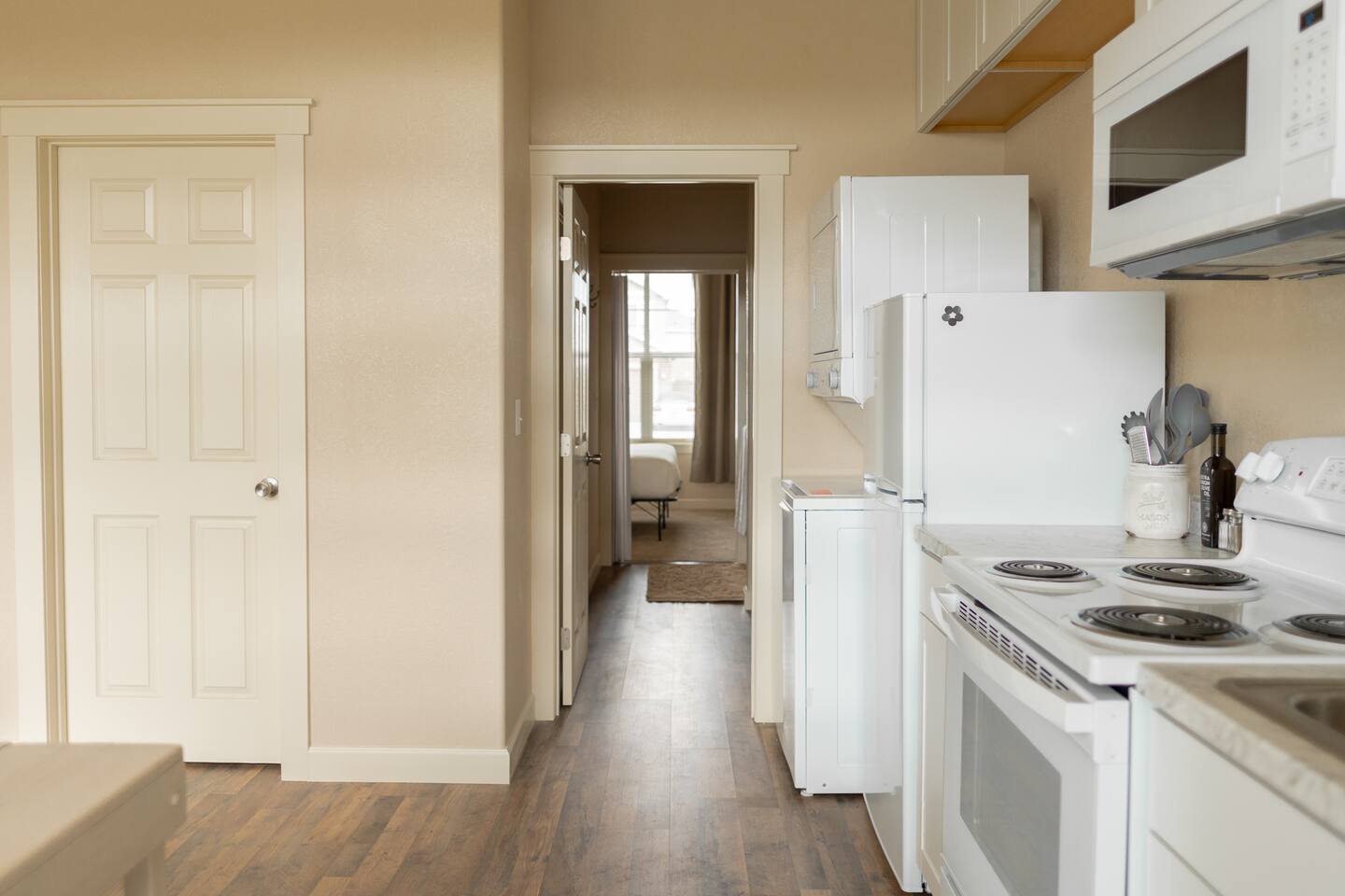 • Full Privacy: Enjoy complete access to the bedroom, living room, kitchen, and bathroom. • In-Unit Laundry: Washer and dryer available anytime during your stay. • Shared Outdoors: Fenced backyard space for fresh air, coffee, or relaxing.