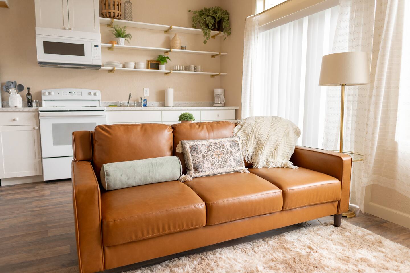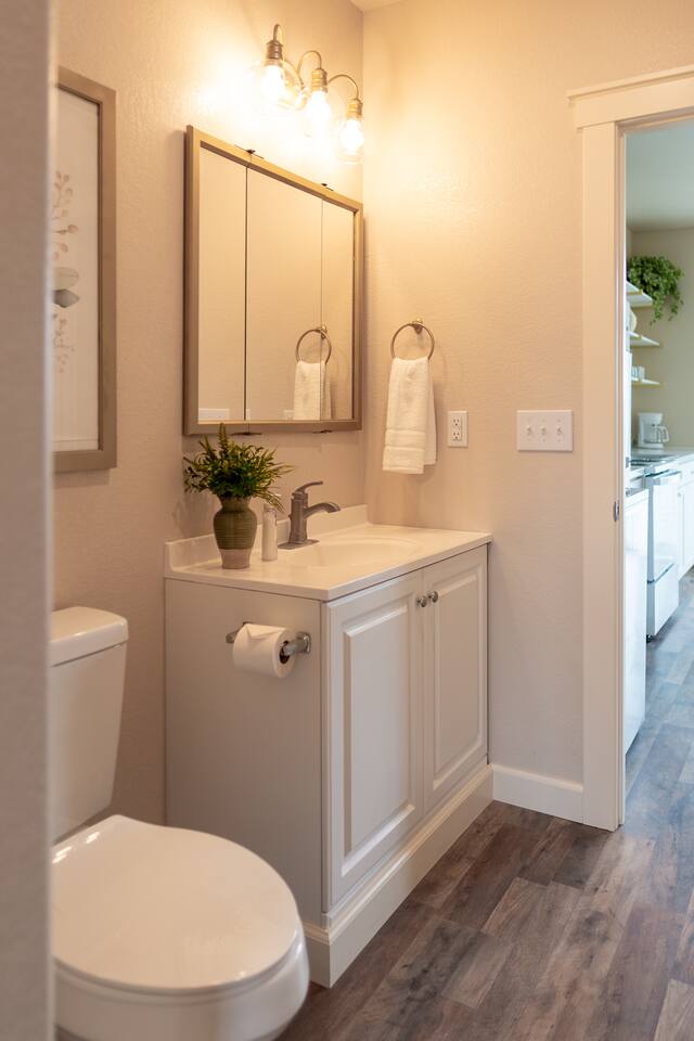 • Cozy Bedroom: Queen bed with soft linens, pillows, and extra blankets for restful nights. • Bright Living Room: Comfortable seating, high-speed WiFi, and a smart TV for streaming or remote work. • Practical Kitchen: Fully stocked with cookware, dishes, utensils, and appliances for easy meal prep. • Fresh Essentials: Towels, soaps, and toiletries provided at check-in so you can travel light.